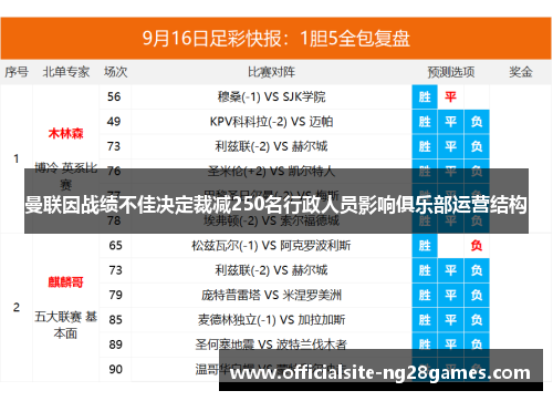 曼联因战绩不佳决定裁减250名行政人员影响俱乐部运营结构